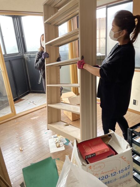 本・木の棚・鉄の棚・その他に分別し処分を行います。